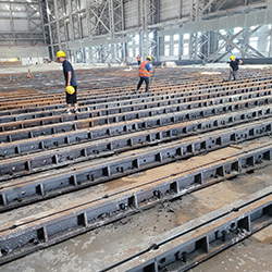 鑄鐵地軌的固定方法,在軌道的內(nèi)側(cè)兩邊,按要求間距(約500-700mm)用...